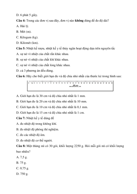Câu 1: Độ chia nhỏ nhất của một thước là