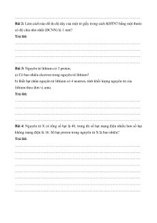 Bài 5: Tổng số proton, neutron và electron của nguyên tử X là 46. Trong đó số hạt