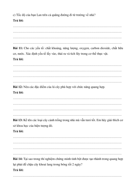 Bài 7: Bạn Linh đi xe đạp từ nhà đến trường, trong 20 min đầu đi được đoạn đường