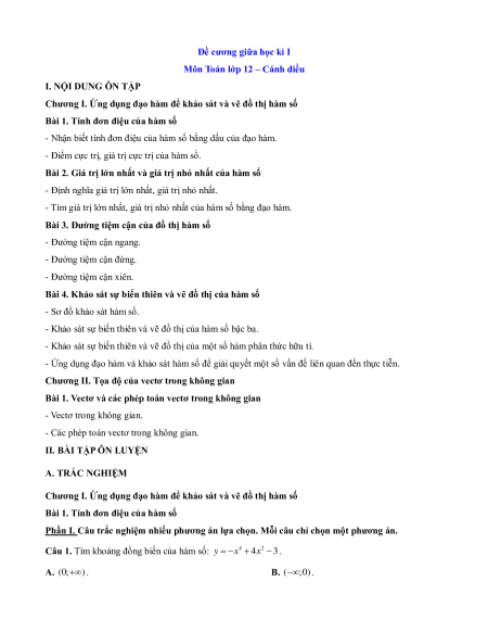 => Tham khảo thêm: Đề cương ôn tập Giữa kì 1 Toán 12 Cánh diều