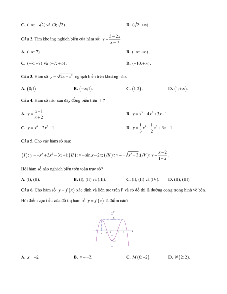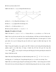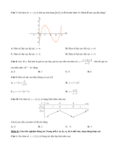 d) Hàm số nghịch biến trên các khoảng ; 1 và 0; 1 . Câu 4. Cho hàm số 2