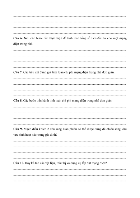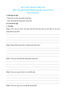 - Thực hành lắp đặt mạng điện trong nhà. II. Câu hỏi ôn tập 1. Tự luận.