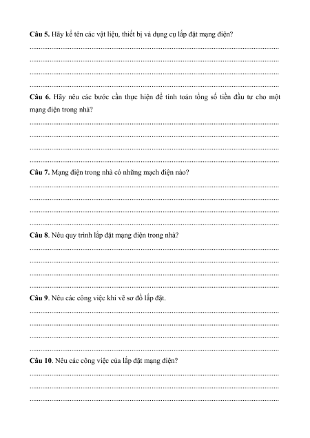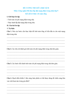 - Thực hành lắp đặt mạng điện trong nhà. II. Câu hỏi ôn tập 1. Tự luận.