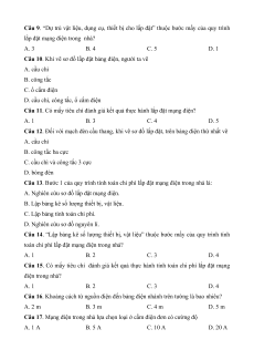 Câu 11. Có mấy tiêu chí đánh giá kết quả thực hành lắp đặt mạng điện? A. 1 B. 3 C. 4 D. 5