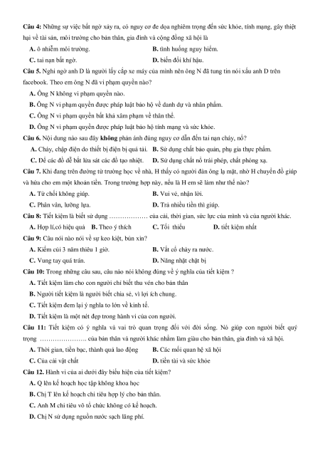 Câu 12. Hành vi của ai dưới đây biểu hiện của tiết kiệm?