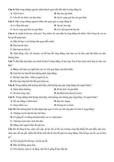 Câu 11: M đang là học sinh cuối cấp, áp lực thi cử thi vào trường công lập khiến M cảm thấy mệt mỏi,