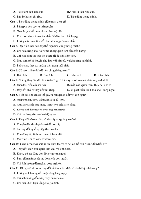 Câu 6. Có bao nhiêu cách để tiêu dùng thông minh? A. Hai cách B. Ba cách C. Bốn cách D. Năm cách