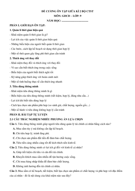 Đề cương Giữa kì 2 GDCD 9 Chân trời sáng tạo (có lời giải)