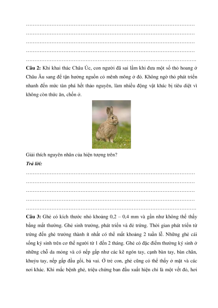 Câu 2: Khi khai thác Châu Úc, con người đã sai lầm khi đưa một số thỏ hoang ở
