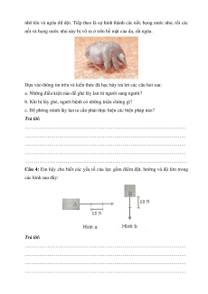 Câu 4: Em hãy cho biết các yếu tố của lực gồm điểm đặt, hướng và độ lớn trong các hình sau đây: Trả lời: