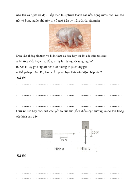 Câu 3: Ghẻ có kích thước nhỏ khoảng 0,2 – 0,4 mm và gần như không thể thấy
