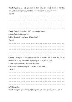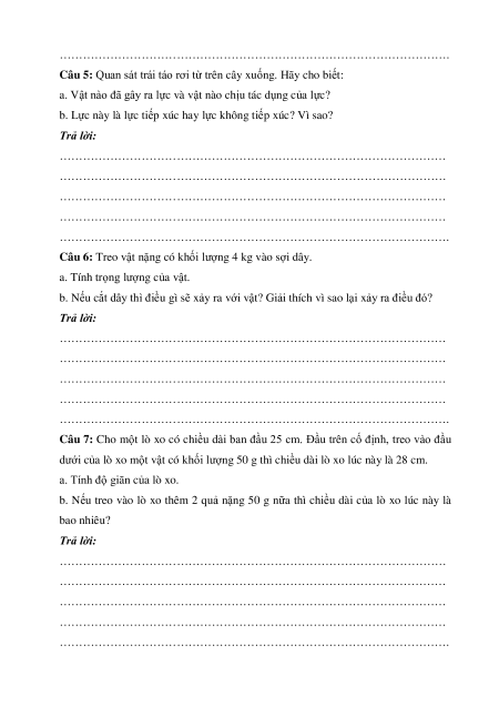 Câu 6: Treo vật nặng có khối lượng 4 kg vào sợi dây.