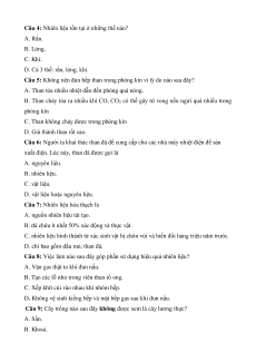Câu 5: Không nên đun bếp than trong phòng kín vì lý do nào sau đây?