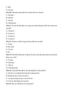 Câu 10: Chất quan trọng nhất cho sự phát triển của xương là A. chất đạm. B. chất béo. C. calcium. D. carbohydrate.