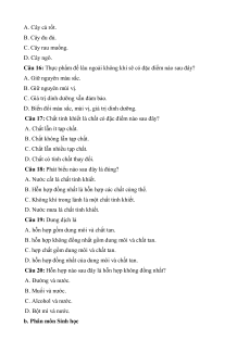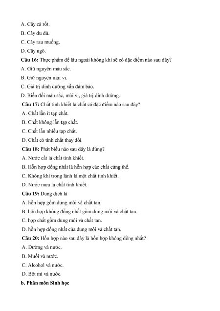 Câu 16: Thực phẩm để lâu ngoài không khí sẽ có đặc điểm nào sau đây? A. Giữ nguyên màu sắc. B. Giữ nguyên mùi vị.