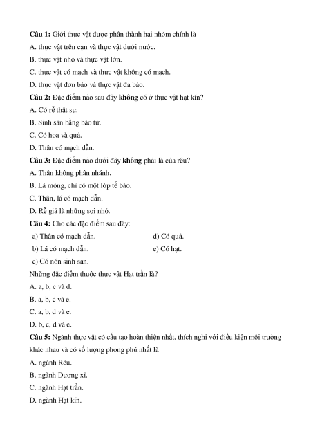 Câu 9: Cây trồng nào sau đây không được xem là cây lương thực? A. Sắn. B. Khoai. C. Mía. D. Lúa gạo.