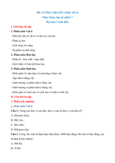 Đề cương Giữa kì 2 KHTN 7 Cánh diều có đáp án