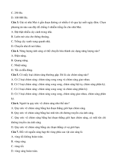 Câu 4. Năng lượng ánh sáng có thể chuyển hóa thành các dạng năng lượng nào? A. Điện năng. B. Quang năng. C. Nhiệt năng. D. Tất cả đều đúng.