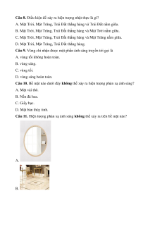 Câu 9. Vùng chỉ nhận được một phần ánh sáng truyền tới gọi là