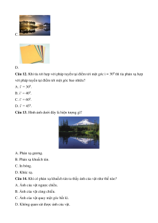 Câu 12. Khi tia tới hợp với pháp tuyến tại điểm tới một góc i = 300 thì tia phản xạ hợp