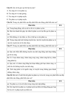 Câu 14. Khi có phản xạ khuếch tán ta thấy ảnh của vật như thế nào?