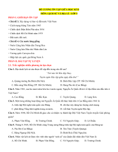 Câu 2. Năm 1941, sau ba mươi năm bôn ba ở nước ngoài, Nguyễn Ái Quốc đã trở về địa điểm nào đầu tiên ở Việt Nam? A. Cao Bằng. B. Bắc Kạn. C. Tuyên Quang. D. Lạng Sơn.