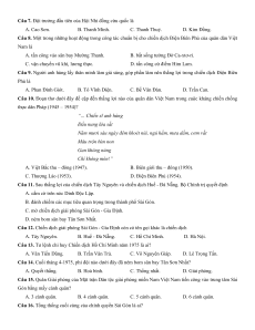 Câu 14. Cuối tháng 4-1975, phi đội nào dưới đây đã ném bom sân bay Tân Sơn Nhất? A. Quyết thắng. B. Hoà bình. C. Thống nhất. D. Giải phóng.