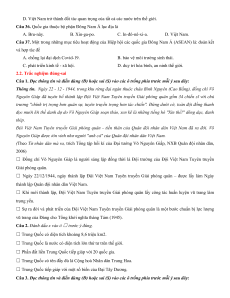 Câu 21. Đất nước Việt Nam bước vào thời kì Đổi mới từ năm nào? A. Năm 1975. B. Năm 1986. C. Năm 1991. D. Năm 2000.