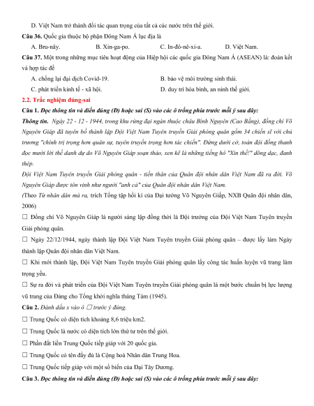 Câu 35. Ý nào dưới đây không phải là ý nghĩa của Việt Nam gia nhập ASEAN?