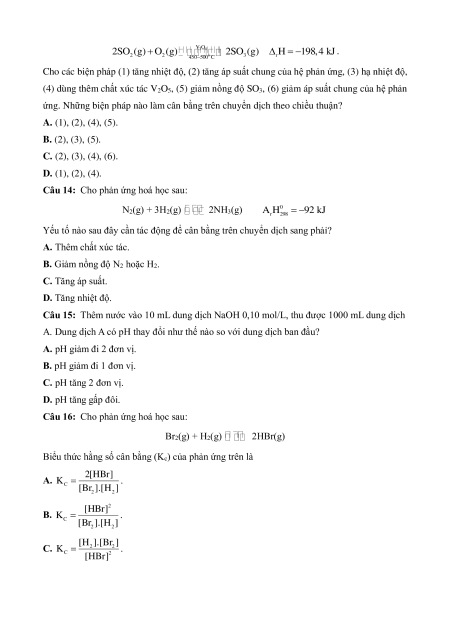Câu 16: Cho phản ứng hoá học sau: Br2(g) + H2(g) 2HBr(g)