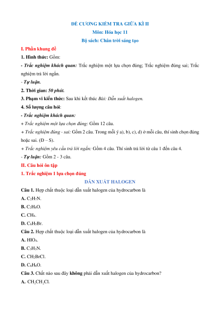 - Tailieugiaovien.com.vn giới thiệu bộ đề cương giữa kì 2 Hóa học 11 có lời giải chi tiết Chân trời sáng tạo mới nhất nhằm giúp Giáo viên có thêm tài liệu tham khảo ra đề thi Hóa học 11.