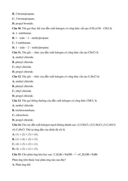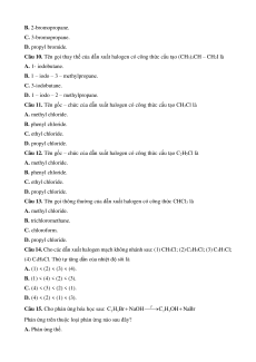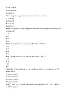 Câu 14. Cho các dẫn xuất halogen mạch không nhánh sau: (1) CH3Cl; (2) C2H5Cl; (3) C3H7Cl;