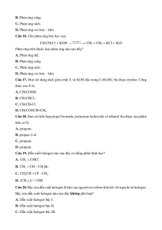 Câu 16. Cho phản ứng hóa học sau: o CH C H OH, t 2 5 3CH2Cl + KOH CH2 = CH2 + KCl + H2O