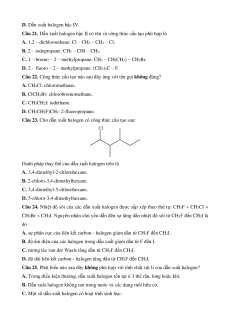 Câu 20. Bậc của dẫn xuất halogen là bậc của nguyên tử carbon liên kết với nguyên tử halogen.