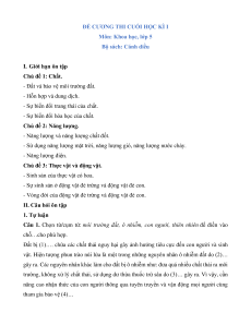 Đề cương ôn tập cuối học kì 1 Khoa học lớp 5 Cánh diều