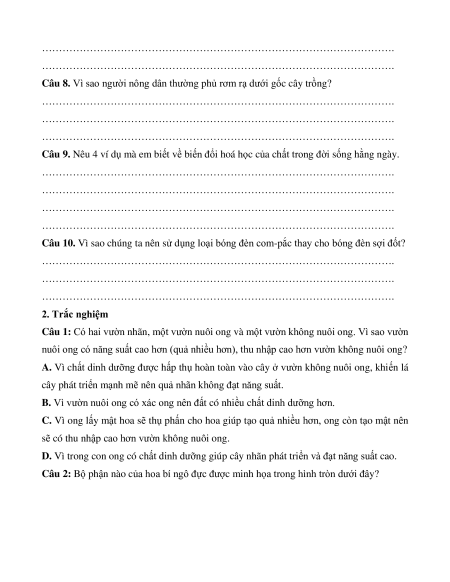 Câu 8. Vì sao người nông dân thường phủ rơm rạ dưới gốc cây trồng?