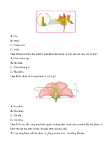 Câu 3: Hợp tử được tạo thành ở giai đoạn nào trong sự sinh sản của thực vật có hoa? A. Hình thành hạt. B. Thụ tinh. C. Hình thành quả. D. Thụ phấn.