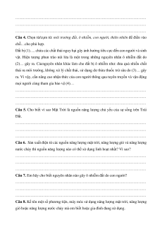 Câu 6. Sản xuất điện từ các nguồn năng lượng mặt trời, năng lượng gió và năng lượng