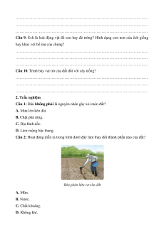 Câu 2: Hoạt động diễn ra trong hình dưới đây làm thay đổi thành phần nào của đất? A. Mùn. B. Nước. C. Chất khoáng. D. Không khí.