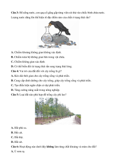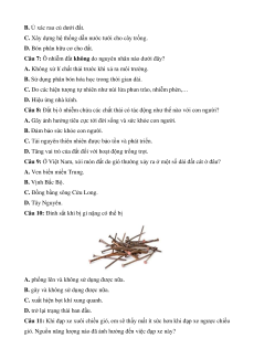 Câu 5: Loại đất nào phù hợp để trồng cây phi lao? A. Đất phù sa. B. Đất cát. C. Đất thịt. D. Đất sét.