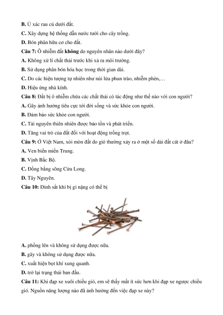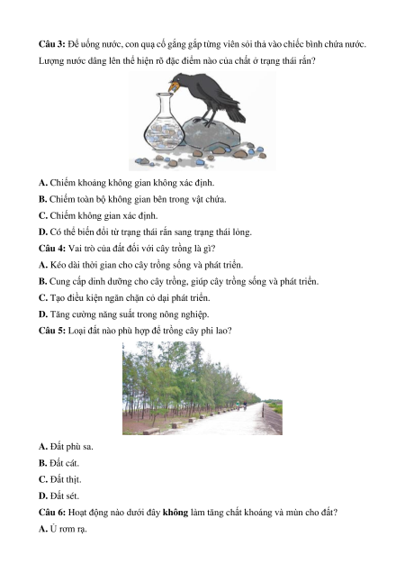 Câu 6: Hoạt động nào dưới đây không làm tăng chất khoáng và mùn cho đất? A. Ủ rơm rạ.