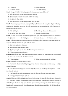Câu 5. Hệ thống các quan hệ mang tính điều chỉnh tuân theo yêu cầu của các quy luật kinh tế được gọi là A. Thị trường. B. Giá cả thị trường. C. Cơ chế thị trường. D. Kinh tế thị trường.