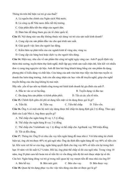 Câu 17. Thông tin: Ông D có nhu cầu vay tiền ngân hàng để mua nhà ở. Với khả năng tài chính