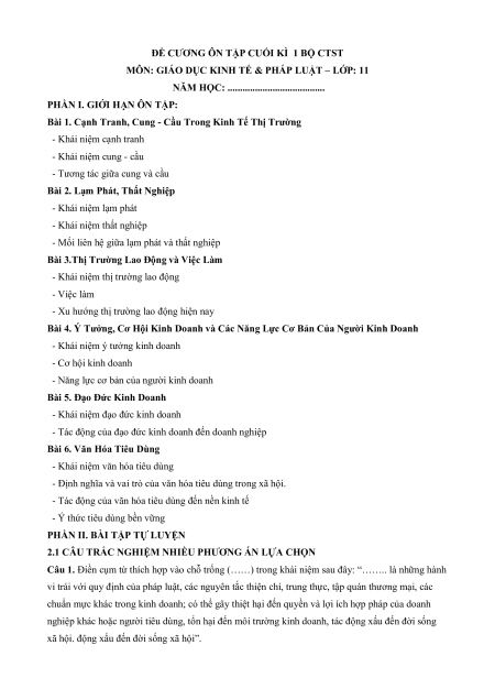 MÔN: GIÁO DỤC KINH TẾ & PHÁP LUẬT – LỚP: 11