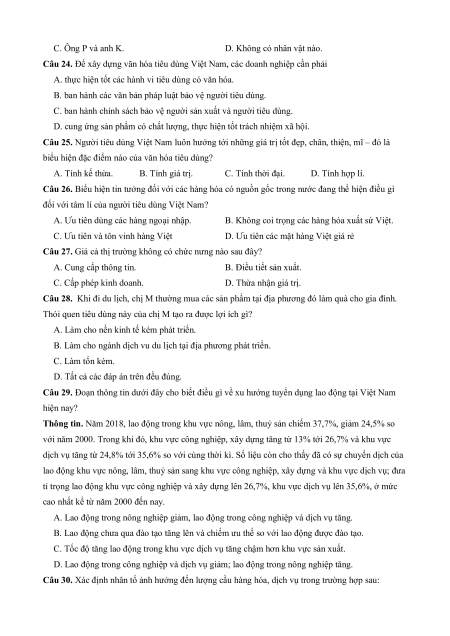 Câu 20. Hành vi nào dưới đây là biểu hiện của đạo đức kinh doanh?