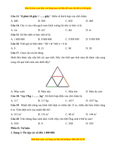 Câu 15. Số lớn nhất có bảy chữ số là: A. 1 000 000 B. 9 000 000 C. 9 999 999 D. 9 999 990