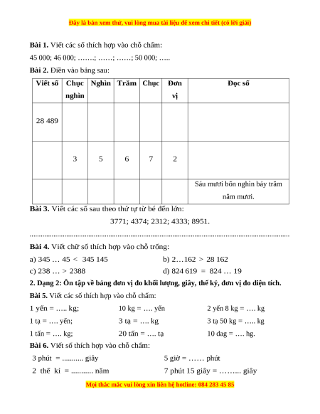 1. Dạng 1: Ôn tập các số đến 1 000 000.