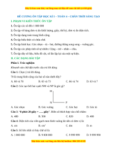 ĐỀ CƯƠNG ÔN TẬP HỌC KÌ I – TOÁN 4 – CHÂN TRỜI SÁNG TẠO