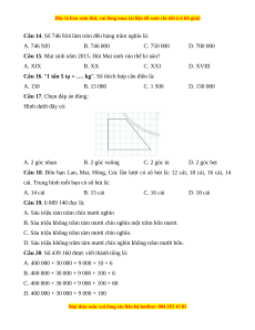 Câu 12. Số gồm 7 triệu, 3 chục nghìn, 2 nghìn, 6 trăm và 4 đơn vị là: A. 3 702 604 B. 7 320 604 C. 7 032 604 D. 7 326 400