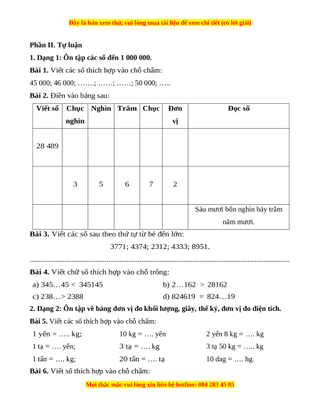 1. Dạng 1: Ôn tập các số đến 1 000 000.